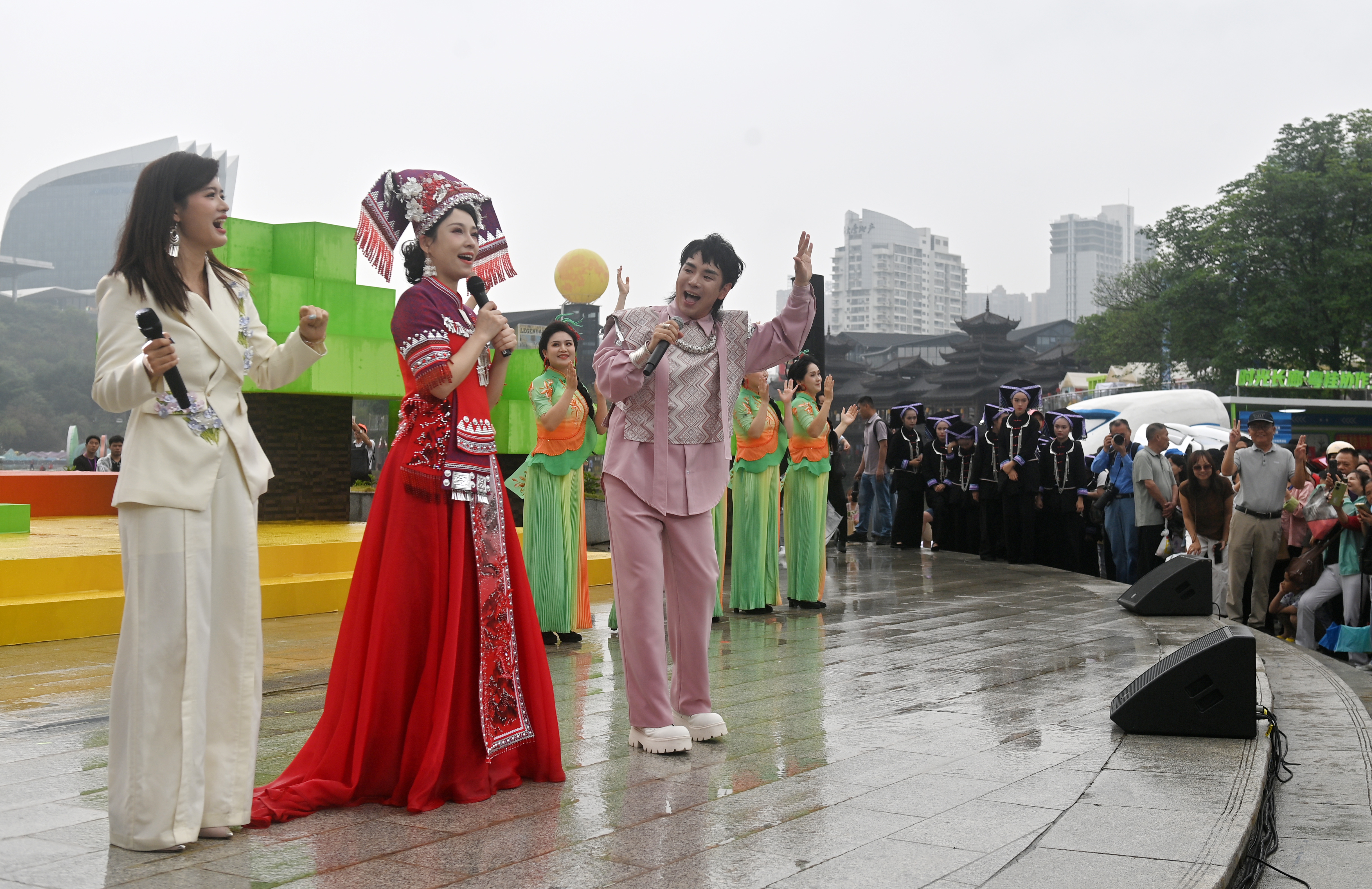 4月18日,广西南宁民歌湖,演员在2026年“广西三月三·八桂嘉年华”文化旅游品牌活动开幕式上表演节目。新华社记者 陆波岸 摄